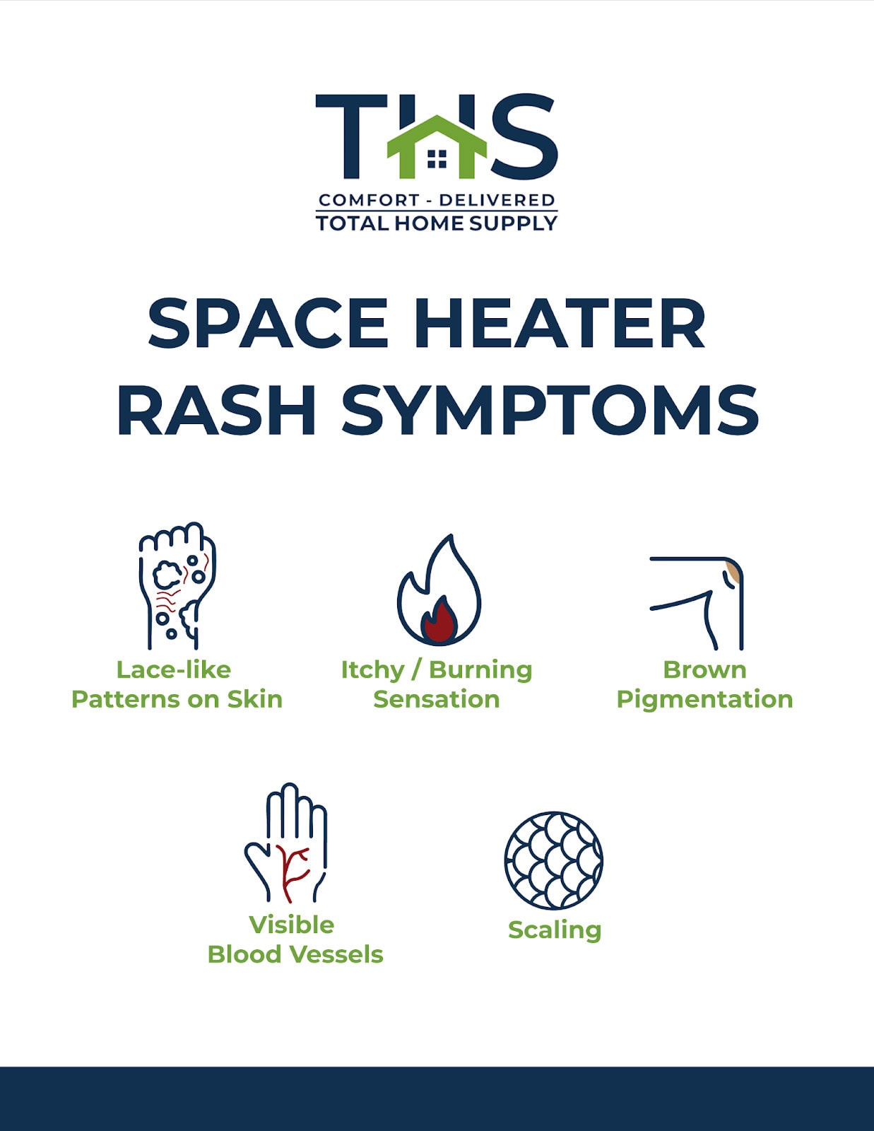Space Heater Rash: What is Toasted Skin Syndrome? Posted on October 29, 2025 It’s heating season once again, and with it comes one of those irritating seasonal rashes: space heater rash. If you’ve ever sat too close to a space heater or a heating pad and noticed a lace-like red or brown patch of skin, you may have seen the early stages of toasted skin syndrome. This guide explains what space heater rash aka toasted skin syndrome is and what it looks like. We also discuss what causes it, how doctors treat it, and — most importantly — practical ways to keep you and your family safe this fall. Quick summary What it is: Space heater rash is a skin reaction from repeated exposure to low-level heat or infrared radiation that doesn’t burn, but damages skin over time. It often forms a net-like (reticulated) patch of redness that can darken to brown. Common culprits: Space heaters, heating pads, electric blankets, hot water bottles, car seats, laptops. Main treatment: Stop the heat exposure; early lesions can fade. Chronic cases may need dermatology treatments (topical retinoids, laser, or specialist procedures). Rarely, biopsy is needed because long-standing lesions can show pre-malignant changes. What is Space Heater Rash / Toasted Skin Syndrome? Clinically known as Erythema ab igne (Latin: “redness from fire”), space heater rash is a thermally induced skin condition caused by chronic, repeated exposure to moderate heat or infrared radiation. Unlike an acute thermal burn, the heat level is below the burn threshold but applied often enough (and close enough) that it causes vascular and pigment changes in the skin. This causes the skin to turn from pink/red reticulation to brown hyperpigmentation and sometimes thinning. Historically toasted skin syndrome was caused by open fires or old electric heaters. Today, it is also caused by laptops, heating pads, and space heaters. Space Heater Rash vs Heat Rash Space heater rash is different from “heat rash” (miliaria), which is caused by blocked sweat glands. The latter appears as small bumps or blisters and typically happens during hot, humid conditions when the skin’s sweat glands get blocked and are unable to release sweat. In contrast, Erythema ab igne results from repeated low-level heat exposure and usually happens during the cold season. Why Space Heaters Cause Toasted Skin Syndrome Space heaters emit radiant heat and infrared energy (see our past article for how they work). When a person’s skin is constantly within the heater’s direct zone (such as bare legs placed close to a portable heater for hours), the skin’s small blood vessels dilate repeatedly. This causes dermal structures to get slowly damaged. Over weeks to months this produces the characteristic net-like discoloration on the skin, which are actually the damaged blood vessels. Because space heaters are used for direct heating, they typically cause most of the rashes seen during the cold season. Here’s an example of a medical case where a space heater caused toasted skin syndrome. Apart from space heaters, other prolonged heat sources can have the same effect, including heating pads, heated car seats, and even laptops placed on one’s lap for long periods of time. People who use heat for chronic pain (such as frequent heating pad users) may also be at higher risk. Space Heater Rash: Signs & Symptoms Erythema ab igne doesn’t show up all of a sudden like acne. It is a typical progression that develops over time. Where it commonly occurs: Areas repeatedly exposed to heat Lower legs Anterior thighs Lower back Abdomen Lap (for laptop users) For space heater-caused rashes, they usually appear on the front of the legs. Early signs: Faint, patchy pink or red areas in a lace-like pattern Affected skin has a slightly itchy/burning feeling Established: Brownish hyperpigmentation with a reticulated pattern May show telangiectasias (small visible blood vessels) Mild scaling of the skin Chronic: Pigment changes may become long-lasting or permanent Long-standing skin lesions Diagnosis Diagnosis is generally clinical: the distinctive net-like discoloration plus a history of repeated heat exposure is usually enough to confirm the rash. When in doubt, doctors mayrequest for a biopsy to be taken to rule out other causes. This is important to distinguish the rash from other skin ailments that have similar symptoms such as vasculitis, cutaneous lupus, or even early skin cancer. Treatment Remove the heat source The single most important step. Based on the medical literature, early lesions will often improve or clear after eliminating the exposure, in this case, the space heater. Topical treatments Dermatologists can prescribe retinoids (such as tretinoin) or topical bleaching/depigmenting agents to improve or restore skin pigmentation In some cases, short courses of low-potency topical steroids can also soothe inflamed skin. Note that such topical treatments must be prescribed by a medical professional. Procedural treatments For persistent pigmentation or telangiectasias, the doctor or dermatologist can recommend laser resurfacing, chemical peels, or other dermatologic procedures. These are usually reserved for established or chronic cases, where topical treatments may not be enough or no longer effective. Biopsy and further workup If the lesion/s are persistent, ulcerated, or show suspicious changes, a biopsy may be needed to exclude rare malignant transformations. Some case reports have shown squamous cell carcinoma, a type of skin cancer, arising from longstanding EAI lesions. How long does it take to go away? Recovery depends on how long the toasted skin syndrome has been occurring. For early rashes: weeks to months after removing the heat exposure. For Longstanding hyperpigmentation: these can persist for months, years, or sometimes be permanent despite treatment. Prevention: How to Reduce Risk Space heater rash is truly one of those ailments where prevention is better tha